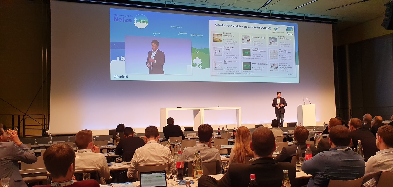 Sebastian Lehnhoff hat auf dem FNN Kongress Netze den openKONSEQUENZ-Ansatz zur offenen und modularen Software-Entwicklung für Netzbetreiber am Beispiel des geplanten Kaskadeninformationstools vorgestellt.