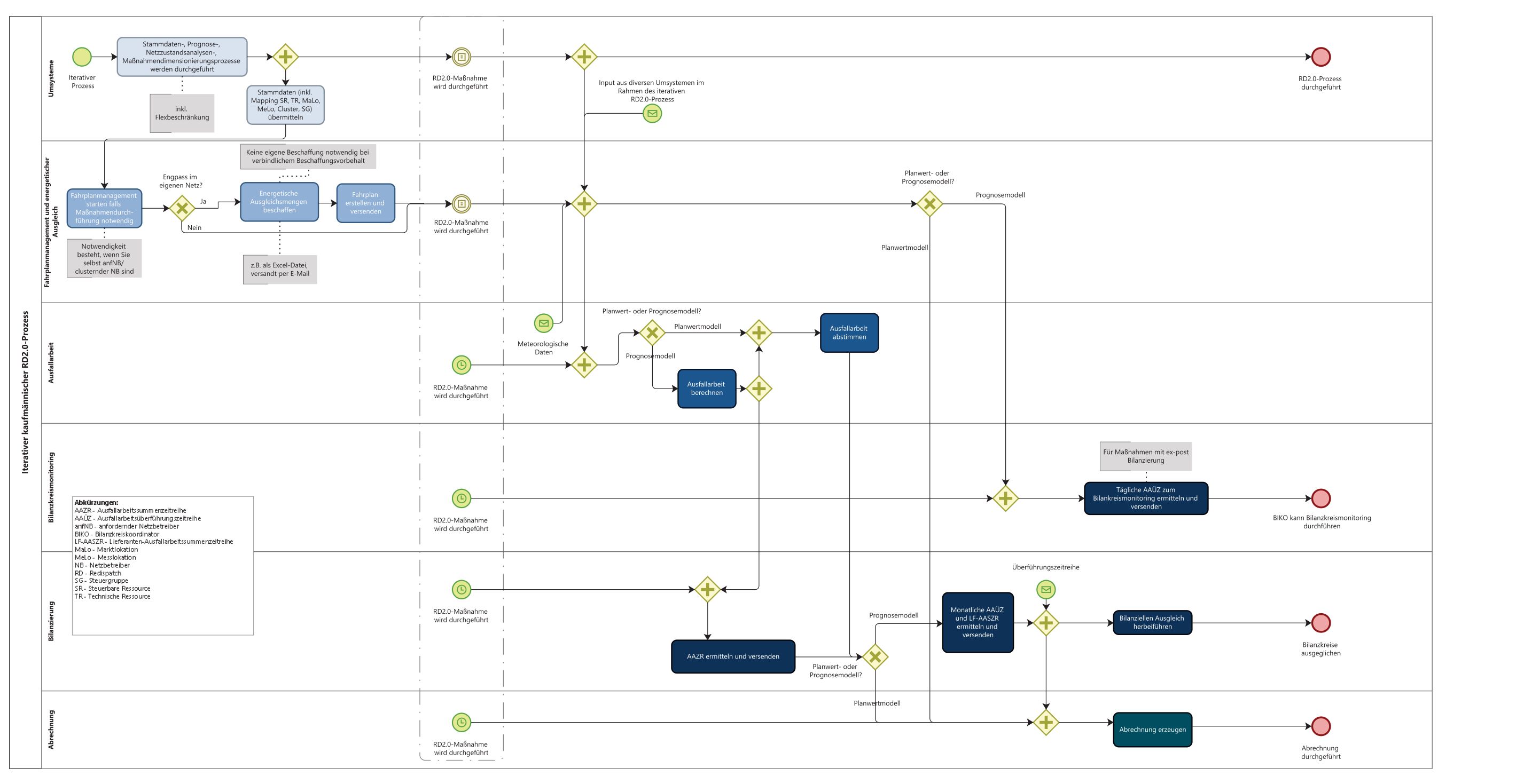 Im Rahmen von Redispatch 2.0 werden diverse neue kaufmännische Prozesse eingeführt. Zentrale Vorgaben wurden durch die BNetzA im Beschluss zum Festlegungsverfahren zum bilanziellen Ausgleich von Redispatch-Maßnahmen unter Aktenzeichen BK6-20-059 veröffentlicht. Den Anlagen 1 bis 3 zu diesem Beschluss können ergänzende Vorgaben entnommen werden. Darüberhinaus gibt es Anwendungshilfen und weitere unterstützende Dokumente des BDEW, welche jedoch keine Rechtsgültigkeit besitzen. Es wurden aktuell noch nicht alle Unterlagen final veröffentlicht.